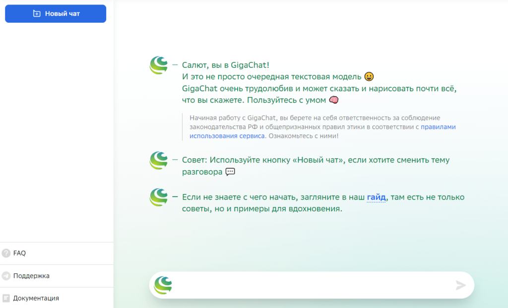 GigaChat — российский аналог ChatGPT и тоже работает в формате чата: вы отправляете запрос, а нейросеть на него отвечает. Разработка поддерживает русский и английский языки. Кроме того, GigaChat запоминает детали разговора, ему можно задавать уточнения, а он будет генерировать ответы на вопросы с учетом контекста беседы.