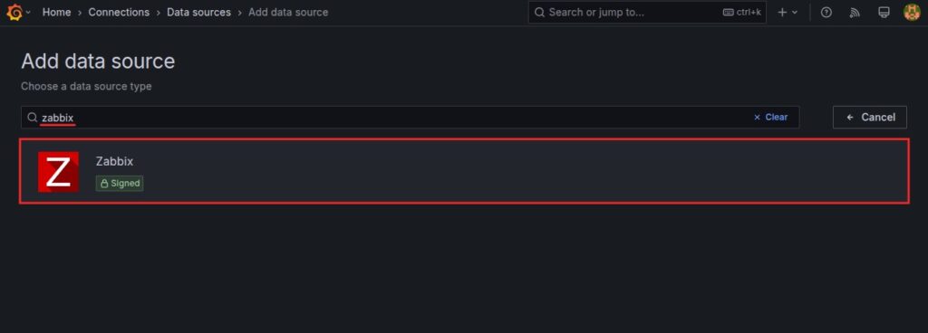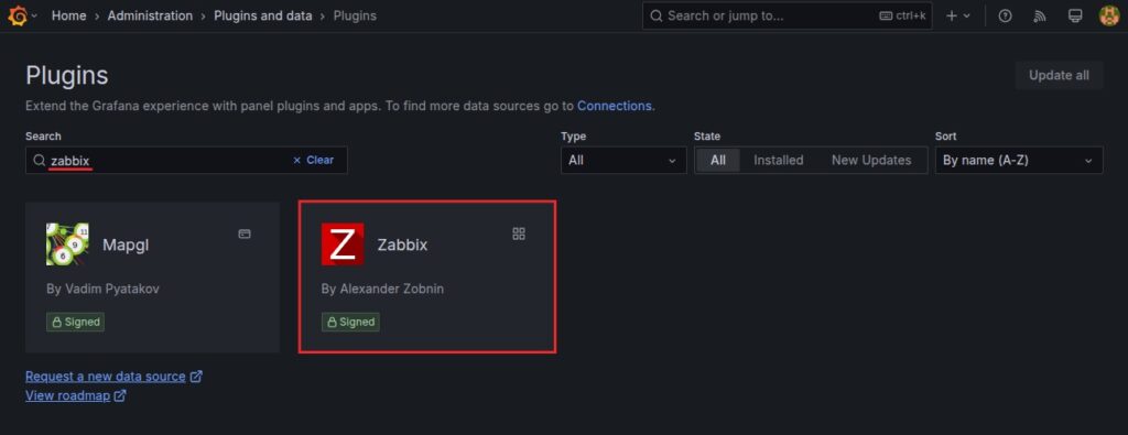 - В поисковой строке введите «Zabbix» и кликните по соответствующему плагину: