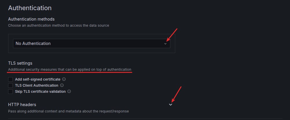 - Укажите желаемый способ аутентификации, а также настройки SSL-сертификата (при наличии) и HTTP-заголовков: