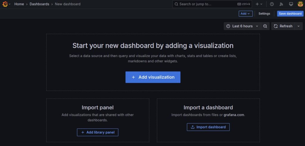 - Начните работать над графиком (dashboard) данных из Zabbix. Для этого вы можете создать новый график или импортировать существующий: