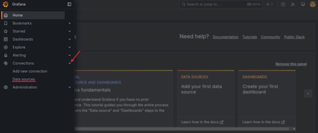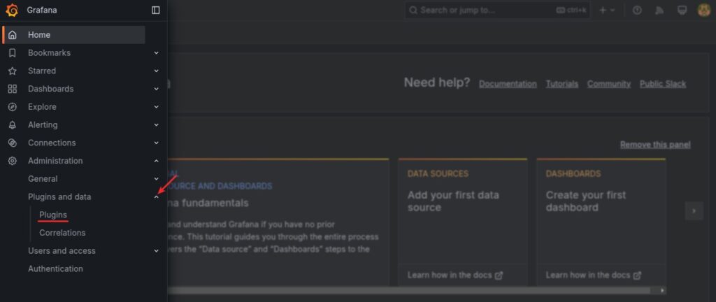 Обратите внимание: логин и пароль по умолчанию — admin admin. Чтобы защитить Grafana от взлома, обязательно смените пароль после авторизации.
