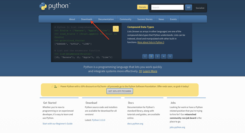 - Зайдите на официальный сайт Python.