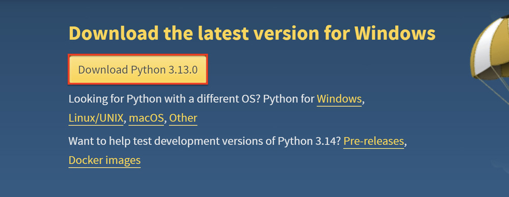 - Перед вами появится кнопка, которая позволит загрузить последнюю версию Python, например, Download Python 3.13.0. Щелкните по ней, чтобы начать загрузку установочного файла.