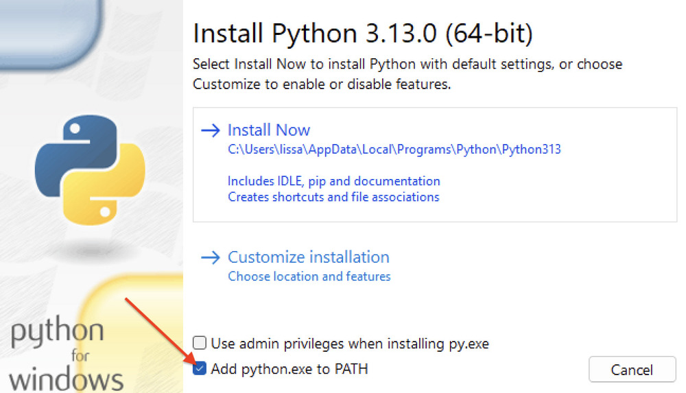 - Install Now — это быстрый и автоматический способ установки. Python установится в пользовательский каталог вместе со стандартными библиотеками, утилитой pip для управления пакетами и Python Launcher. Процесс не требует дополнительных настроек и подходит для большинства пользователей.
