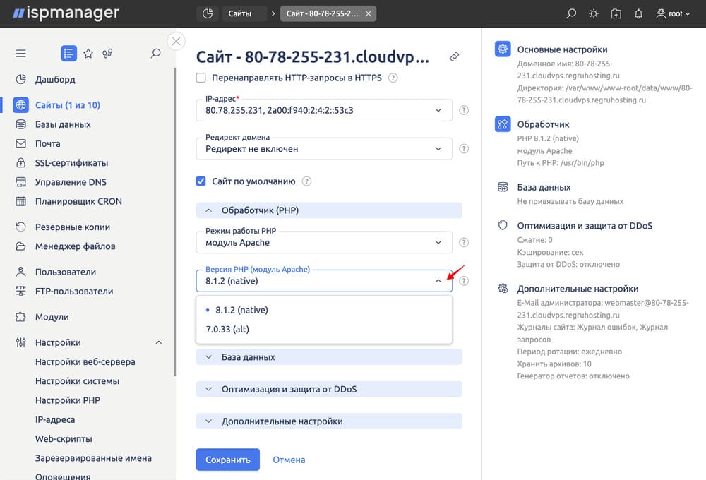 На сервере может быть установлено несколько версий PHP. О том, как обновить версию PHP, расскажем ниже.