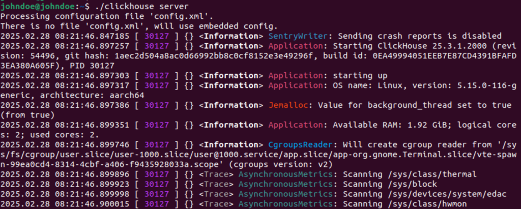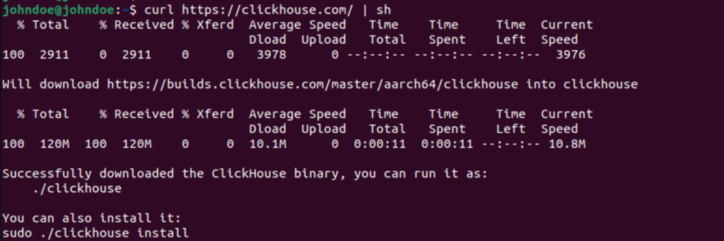 Этот скрипт автоматически загружает исполняемый файл, совместимый с вашей операционной системой (Linux, macOS или FreeBSD). После установки можно запустить ClickHouse в локальном режиме без сложной конфигурации: